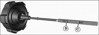 5. Oil level should be between minimum (C) and maximum indicators (D).