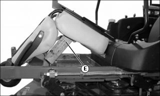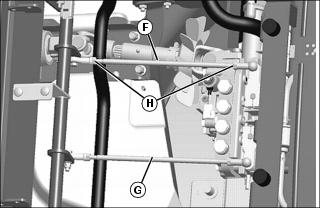 • The right drive wheel must not turn. If it does turn, adjust the right motion control linkage (F):
