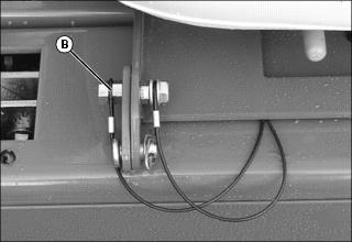 24. Install tethered lock bolt and nut (B) from front of seat frame.