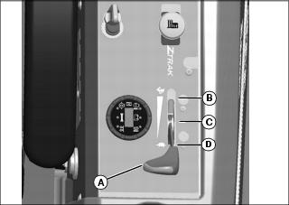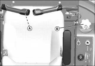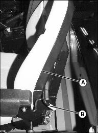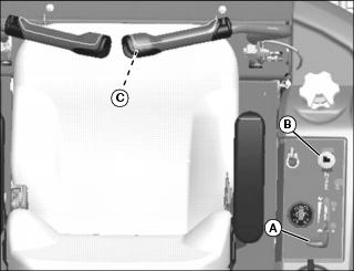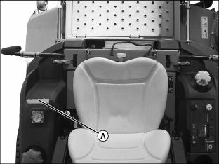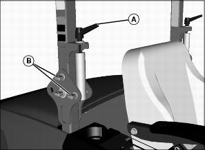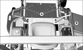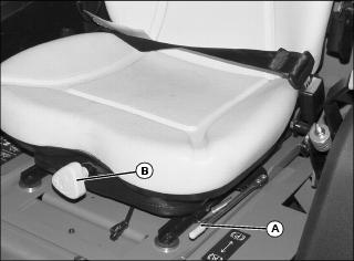 Adjust seat spring tension knob (B) to the weight of the operator, so that the seat floats in the center of its travel as the machine traverses rough terrain.