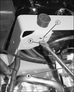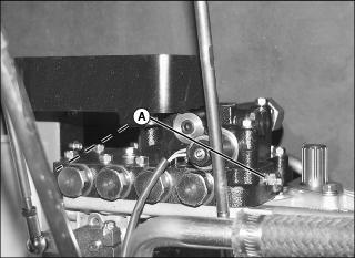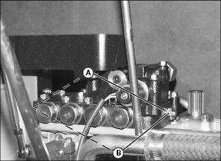 3. Loosen the jam nut (B) on each bypass valve using a 17 mm wrench. Use an 10 mm wrench to turn both bypass valves (A) counterclockwise approximately 1/4 turn.
