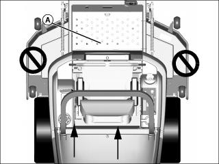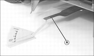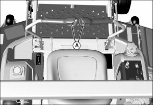 Do not step on either side of the mower deck when mounting and dismounting the machine. Mount the machine from the front using foot plate (A). Park machine safely (See Parking Safely in the SAFETY section.) before dismounting.