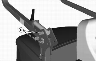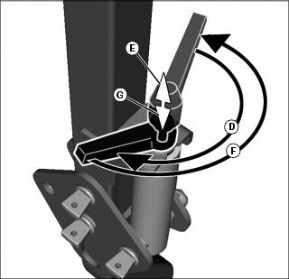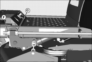 • Turn hex nut (G) counterclockwise to lower front of mower deck.