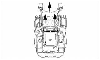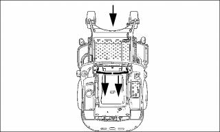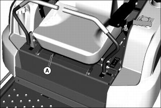 c CAUTION: Avoid injury! The seat is heavy and can cause injury if it falls. When performing any service function under the operator seat, make sure the seat stop rod securely locks the seat in the raised position.