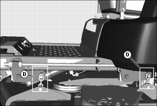5. When seat is fully raised, make sure stop rod tab (D) securely locks the seat in the raised position.