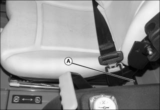 2. Push and hold the seat adjustment lever (A) toward the middle of the seat.