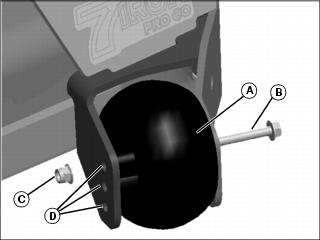 • Turn hex nut (G) clockwise to raise front of mower deck.