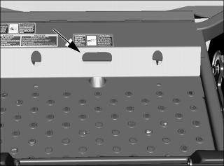 Do not step on either side of the mower deck when mounting and dismounting the machine. Mount and dismount the machine using the front foot plate.