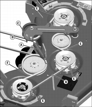 NOTE: If necessary, see drive belt installation label on mower deck.