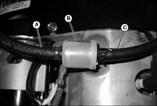5. Remove the fuel filter from the inlet fuel hose (C). Discard filter.