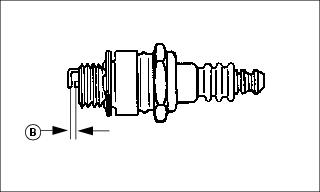 5. Check and adjust spark plug gap (B) to 0.76 mm (0.030 in.).