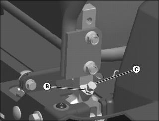 9. Adjust the equalizer adjustment nut (C). (See Park Brake Adjustment)
