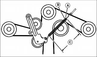 • To increase belt tension, loosen spring jam nut (A) and turn nut (B) clockwise.