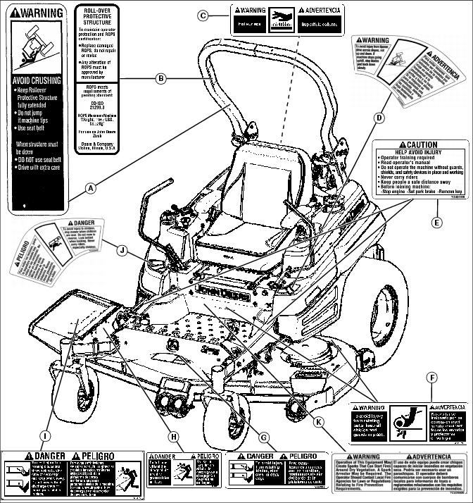 To avoid injury from rotating blades and thrown objects, stay clear of deck edge and keep others away.