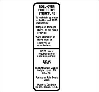 • ROPS Maximum Machine Weight: 1967 LBS. [892Kg]
