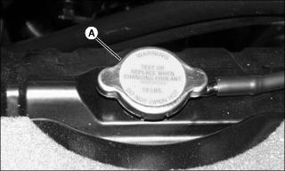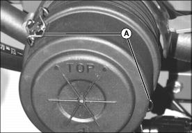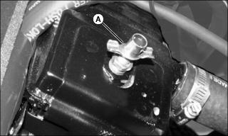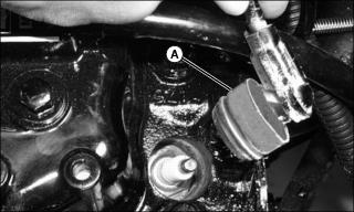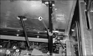3. Remove dipstick (A) located on the left side of the engine under the seat. Wipe dipstick with a clean cloth.