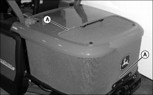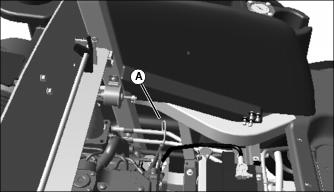 2. Pull forward on the release lever (A), while pulling forward on the backrest of the operator’s seat.