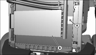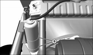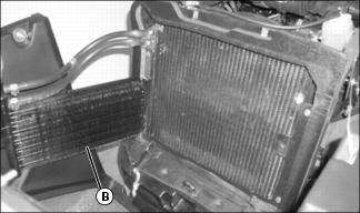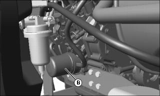 6. Remove oil filter (B) located on the lower left side of the engine. Turn filter counterclockwise to remove.