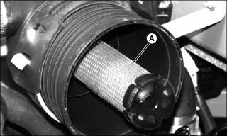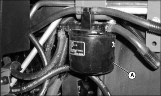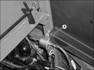 6. Turn key switch to RUN position for 2 minutes prior to starting engine. The fuel pump (A) will pressurize the fuel and remove any air in the system