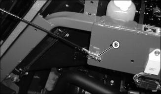 3. Remove spring pin (B) and slide cable away from clevis pin.
