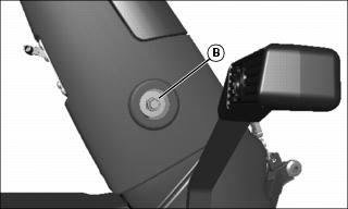 4. Tighten nylock nut (B) on steering column to operator’s preference, but do not exceed 48 N•m (35 ft-lb).