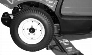 c CAUTION: Avoid injury! Machine must be safely supported on jack stands before installing wheel. Do not use floor jack to support machine.