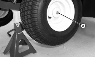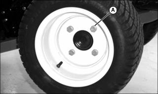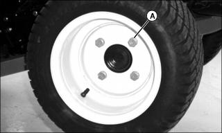 1. Remove wheel bolts and washers (A). Remove wheel from rear axle.