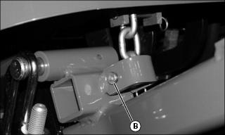 9. Install clevis pin (B) through bracket and chain, and secure with spring pin.