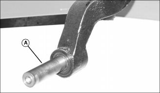 7. Remove spring pin (A) and clevis pin (B) from mower deck lift arm.