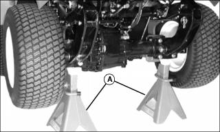 5. Install jack stands (A) under left and right side of front axle.