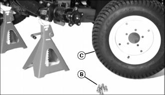 2. Remove front wheel (C) from front axle.