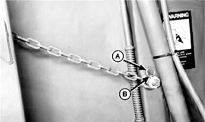 5. Attach the end chain link (A) on lockout hook (B). Release spring assembly.