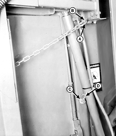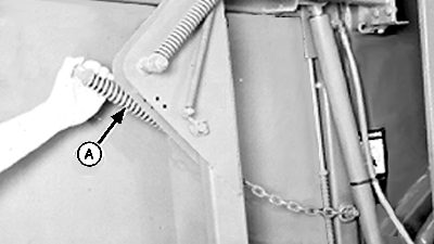 3. Remove tension from chain by rotating spring assembly (A). Remove end chain link from gate pin.