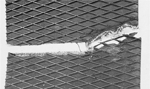 Belt fabric cut when cutting down toward surface of the belt to remove diamond pattern.
