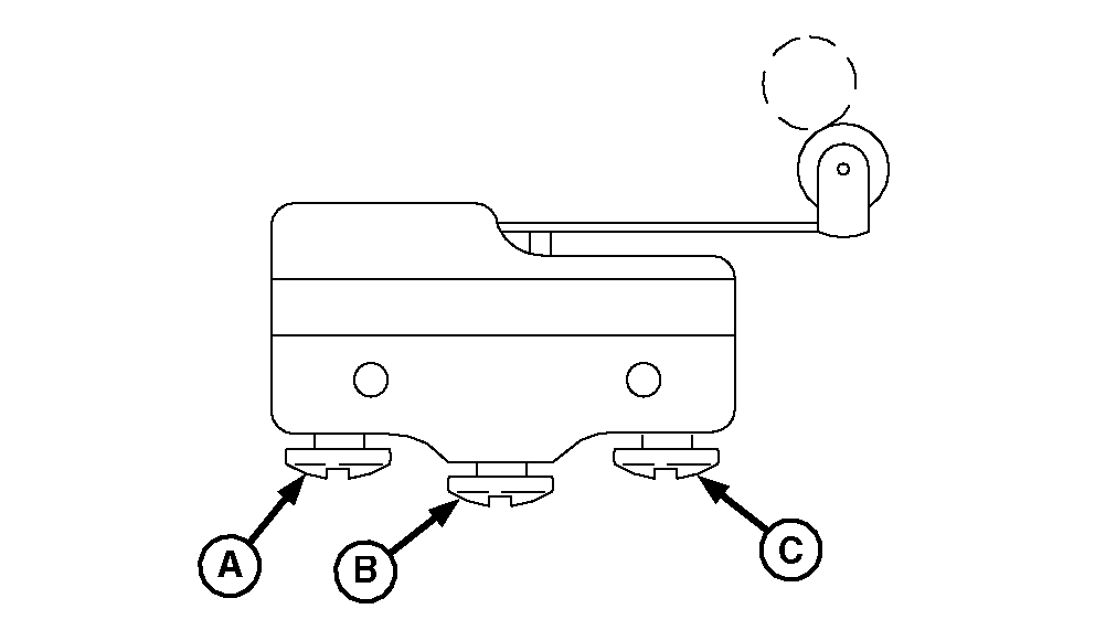 3. Move lead from normally open (B) to normally closed (C) terminal.
