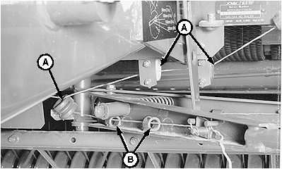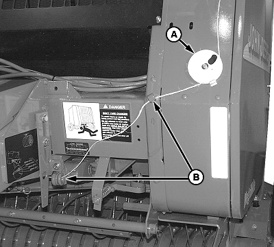 Route twine through guides (A) and front twine arm guides (B).