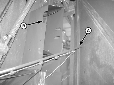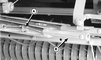 Place twine guide arm (A) into notch (B).