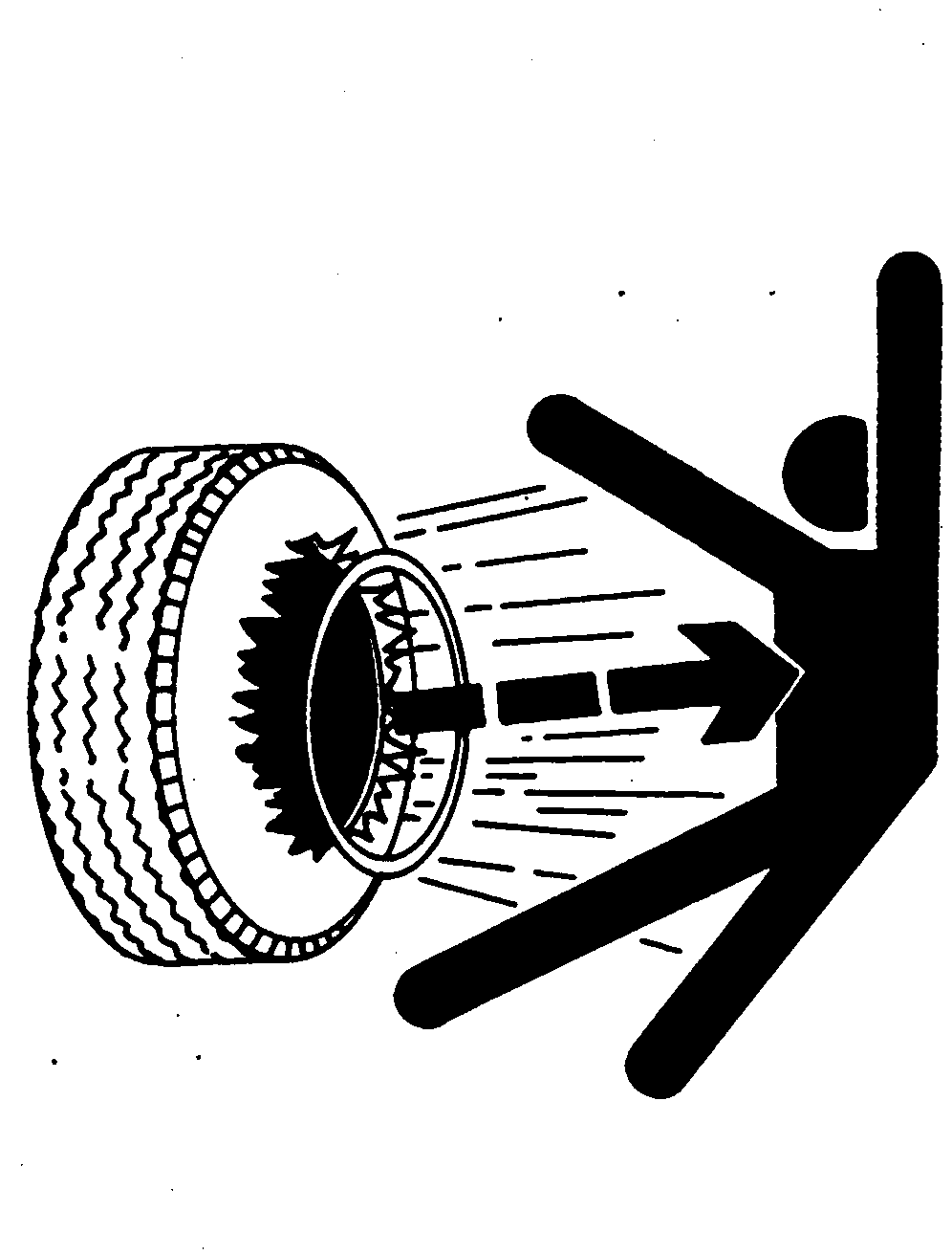 When inflating tires, use a clip-on chuck and extension hose long enough to allow you to stand to one side and NOT in front of or over the tire assembly. Use a safety cage if available.