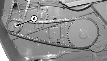 An open-end wrench can be placed on the gear case output shaft (A) if it is necessary to rotate the shaft by hand.
