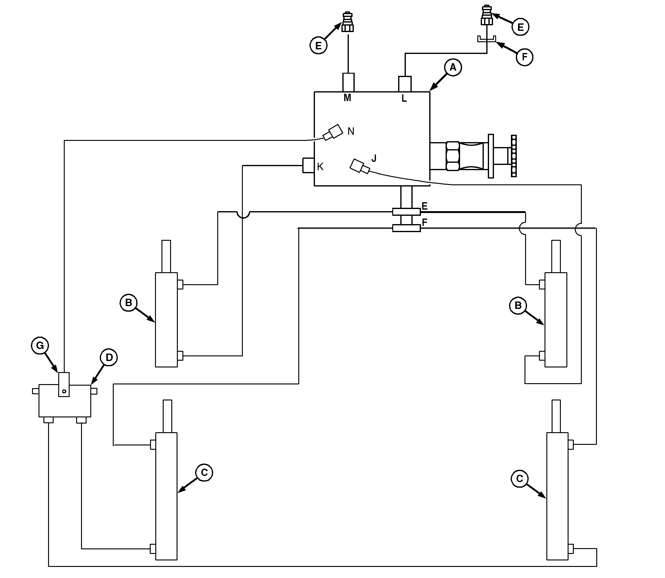 Gate lock valve (D)-A two-position spool valve used to block flow of oil, both to and from the base ports of gate cylinders (C).
