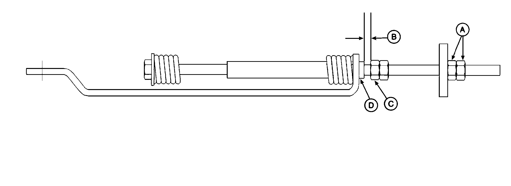 Adjust spring until clearance (B) between nut (C) and top of spacer (D) is within specifications.