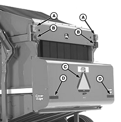 Be sure SMV emblem (C), turn/warning lights (A), tail lights (B) and reflectors (D) are clean and visible. Make sure baler turn/warning lights operate with tractor warning lights and turn signals.