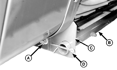 Remove cap screw and lock nut (A). Remove cotter pin (D) from right-hand end of compressor rack tube.