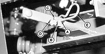 Set distance between the twine arms by installing spring pin (E) in the desired position: