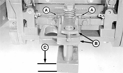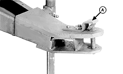 Remove locking pins (A) and slide drawbar to center position (shown).