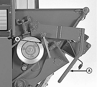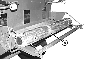 Swing lower tension arm out, place net wrap roll (A) at loading position.