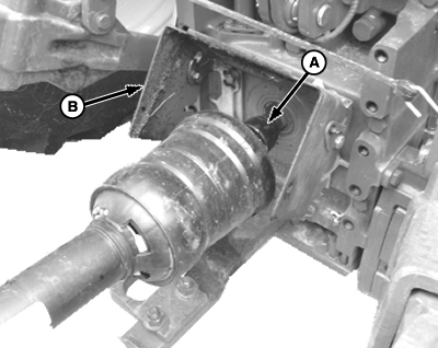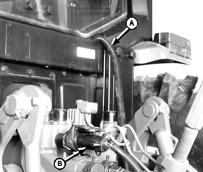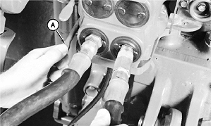 Push lever (A) down to disconnect hydraulic hoses from tractor receptacles. Store hydraulic hoses in baler tongue.