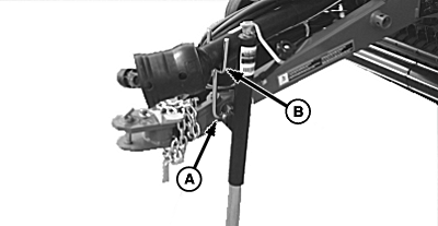 Remove quick-lock pin, pin with PTO support and jackstand from storage location. Put jackstand in tongue support location.