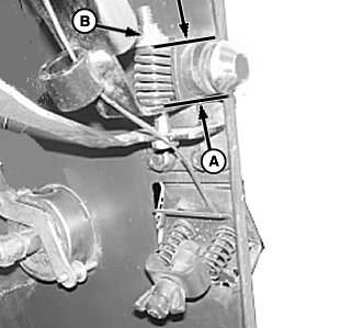 Increase or decrease spring length by loosening or tightening flange nut (B).