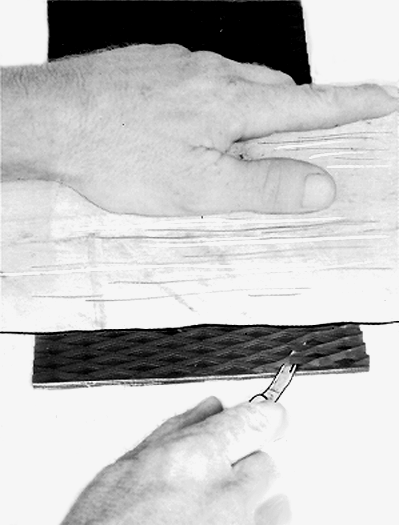 Measure 25 mm (1 in.) from end of belt. Use a sharp knife to remove diamond pattern while being careful not to cut to the cord.